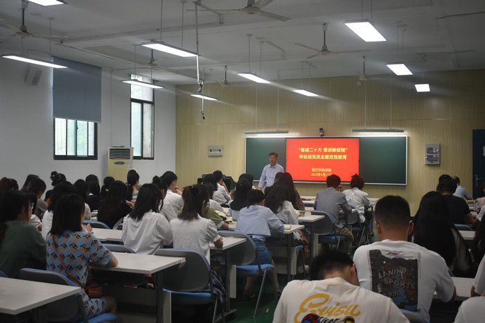 朱绍友为全体毕业生党员上“喜迎二十大、奋进新征程”专题党课,并提出三点要求:强化党性修养,衷心拥护“两个确立”,忠诚践行“两个维护”,要从党的百年奋斗历程中汲取力量,在服务乡村振兴的主战场建功立业;要强化先锋模范作用。要始终恪守初心使命,在新的岗位上要始终立德立行,时刻不忘党员身份,始终保持先锋模范作用,将个人理想和祖国前途紧密的联系在一起,在新的征程上奋力奔跑,争取跑出当代青年的最好成绩。强化服务人民群众,要始终牢记党的宗旨,坚持人民中心,时刻保持同人民群众的血肉联系。同时,他强调,毕业离校在即,党员要做文明离校、安全离校的典范,发挥榜样示范作用和党员引领作用,特别是要带头落实好毕业生就业工作,以实际行动践行青年一代的责任与担当。