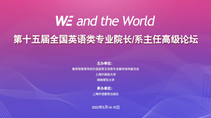 全国英语类专业院长/系主任高级论坛是教育部高等学校外国语言文学类专业教学指导委员会与上海外国语大学共同发起、主办,上海外语教育出版社承办的高规格英语类专业学术论坛,见证了英语类专业十多年来的蓬勃发展,成为引领我国英语类专业改革探索的一面旗帜,更是国内外语界高层次学者对话、高质量学术争鸣、高水平教学交流、高品质资源展示的重要平台。本届论坛以“WE and the World”为主题,将高举习近平新时代中国特色社会主义思想旗帜,服务国家发展战略,以引领我国外语学科融合、专业优化、课程提质、“三有”人才培养为宗旨,聚焦英语类专业如何发展专业本领、提升话语能力、弘扬共同价值,围绕学科内涵建设与专业优化、课程提质与培养模式创新、话语能力与国际传播力建设、价值引领与思政育人路径、信息化与教师教研能力提升等专题展开研讨。全国高校外语界专家、教师和学生共计10余万人收听收看了线上论坛的专家讲座。