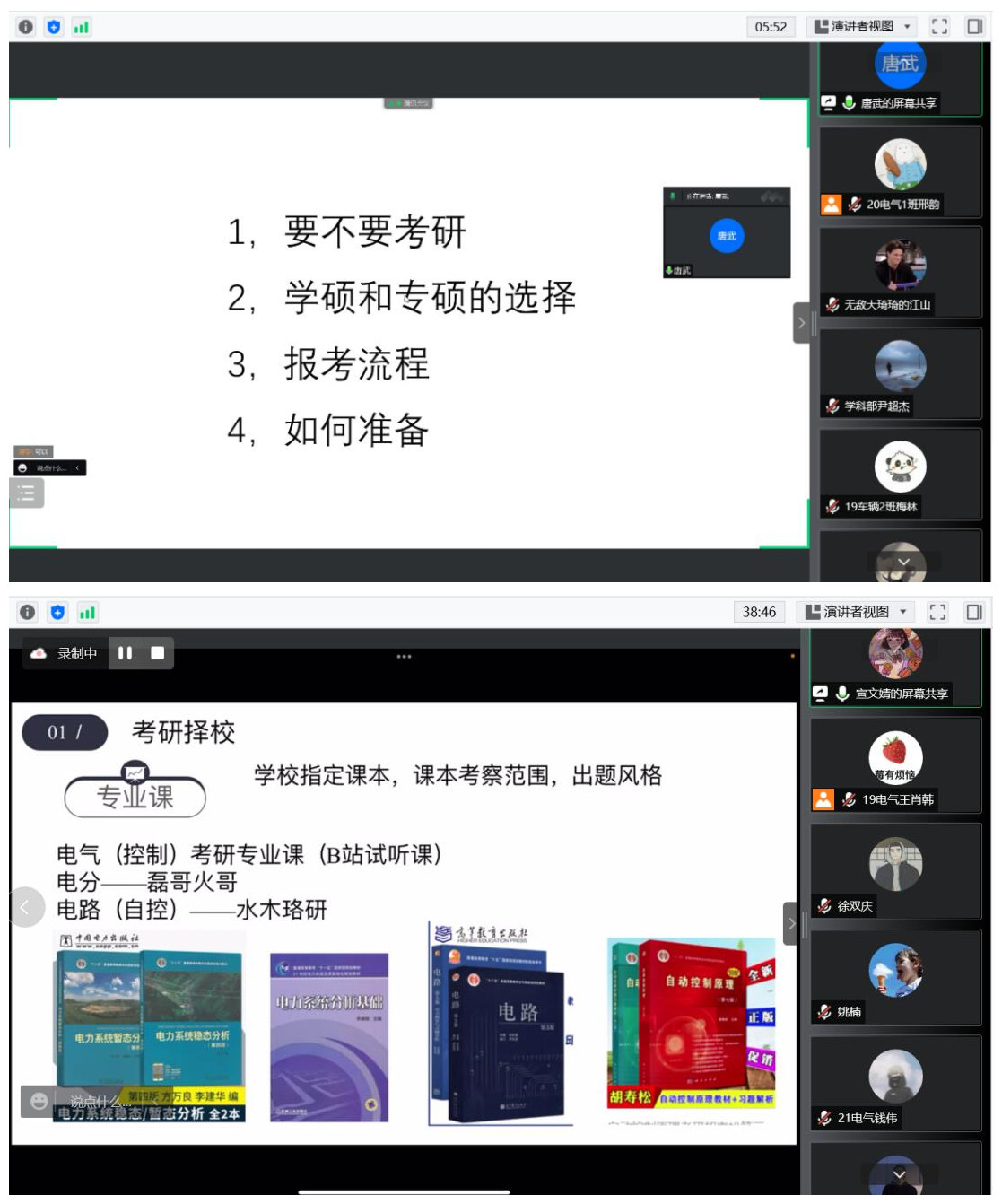 开展考研经验交流。工学院2022届考研录取率超过34%,一批学生考入浙江大学、中国农业大学、重庆大学、河海大学等知名高校。学院充分发挥他们的示范引领作用,分专业举办线上考研经验交流会6场,较好引导了低年级学生坚定专业自信、明确发展方向。