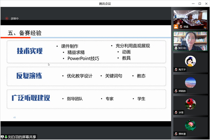 5月25日下午,学院邀请全国青教赛第一名获得者、北京科技大学刘白羽教授做客第四期“理学名师大讲堂”,带来了题为“教学演示和青教赛经验分享”的精彩报告。报告中,刘白羽教授首先教学演示了微分几何课程中的《曳物线》一节,通过自行车后轮运动轨迹的实际问题出发,从问题引入、曳物线的相关概念、拓展应用、小结与思考等7个环节层层展示了如何将深奥的微分几何中的数学概念通过讲故事的方式展示给学生。而后,刘白羽分享她在青教赛备赛过程中的宝贵经验,对青年教师如何准备教学比赛给出了建议与指导,并举例演示了每一个环节,她特别指出“上好一节课,就是讲好一个好故事。”最后,刘白羽就基础学科教学大赛技巧、教学团队构建、筹备内容和选题、课件动画制作等问题一一与在会的老师们进行了深入交流。