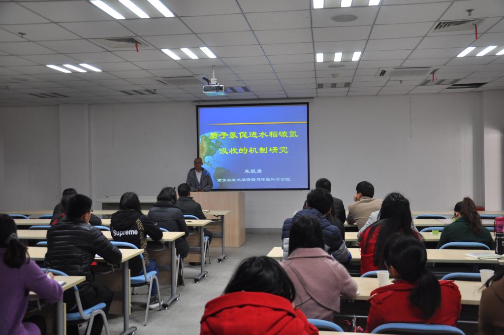 本网讯 3月8日-9日,南京农业大学朱毅勇教授应邀来资源与环境学院指导交流,指导审议中青年教师国家自然科学基金申报工作,并作题为《质子泵促进水稻碳氮吸收的机制研究》的学术报告。院长郜红建主持报告会,学院中青年教师和研究生30余人参加了报告会。