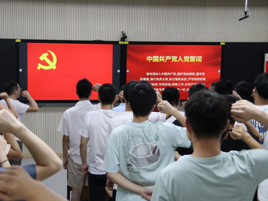主题教育现场,全体党员面对党旗进行了庄严宣誓,重温入党誓词。学院党委就党员组织关系转接、毕业生文明离校等工作进行布置和培训。(陈鑫诚 通讯员:刘灿)