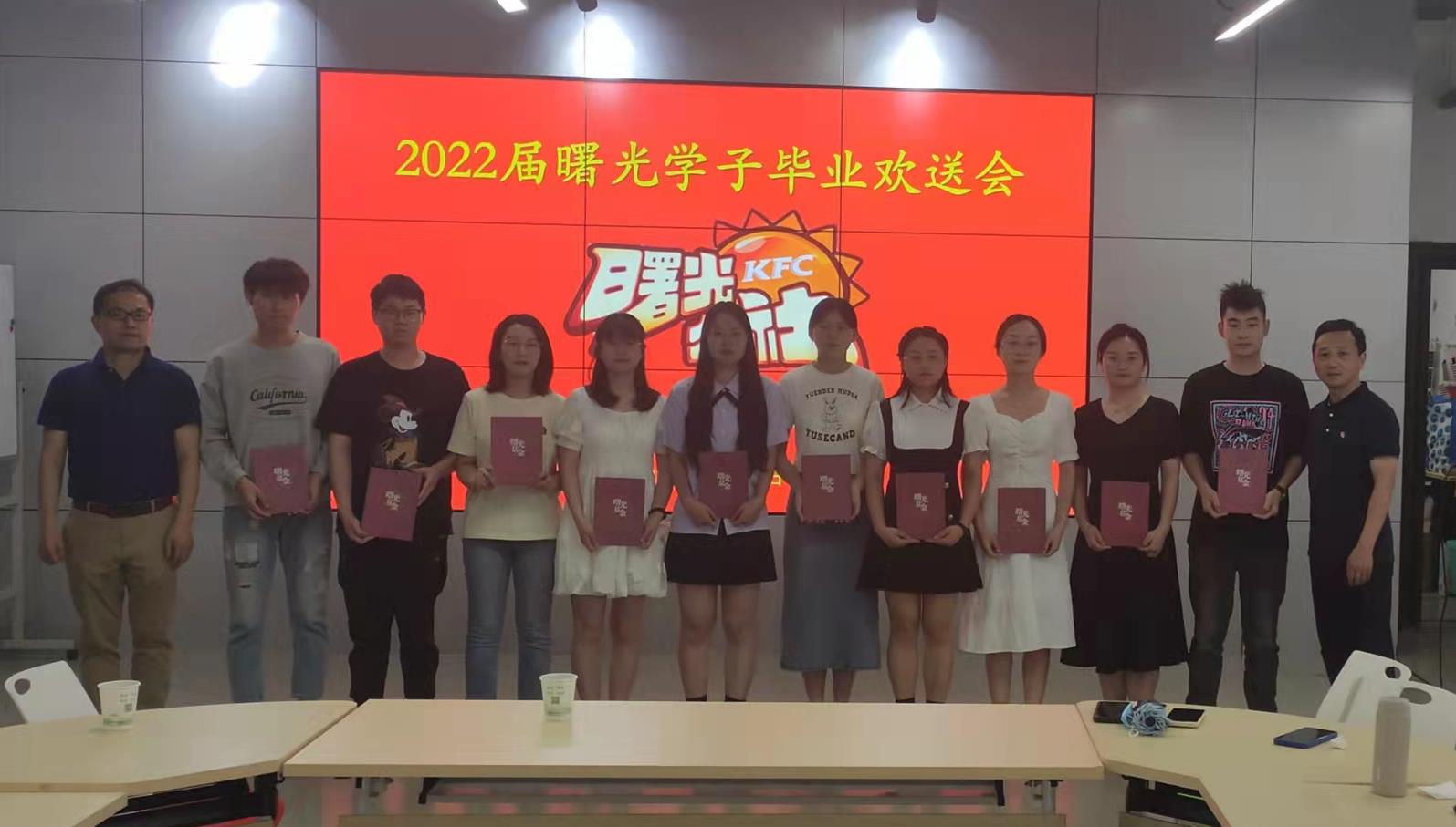 本网讯 5月31日中午,2022届曙光学子毕业欢送会在校易班发展中心举行。百胜餐饮(安徽)有限公司公共事务部副经理宁向尚,校党委学工部(处)副处长、学生资助管理中心主任周涛、学生资助管理中心负责老师及2022届曙光学子及非毕业班曙光学子代表参加了活动。