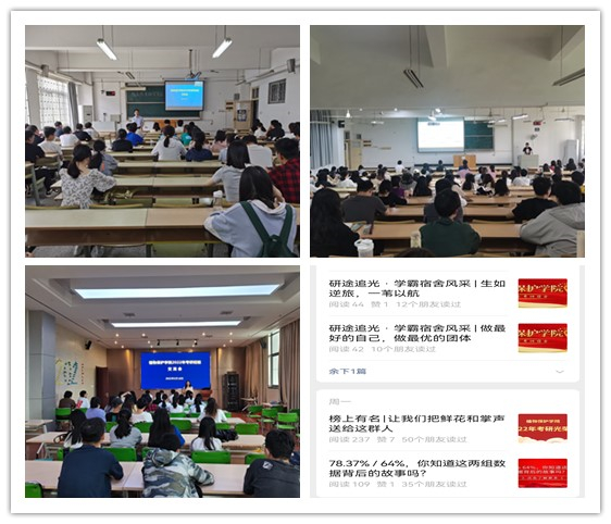 以“新”为关键点,注重激发学生奋斗精神。学院2022届毕业生考研录取率达58.11%。为继续发挥优势、巩固育人成效,学院有针对性的开展3场专业考研经验交流会,并通过学院官微对学霸班级、学霸宿舍、优秀考研个人进行宣传,努力营造积极向上的氛围。