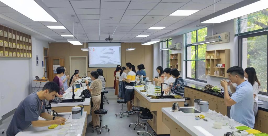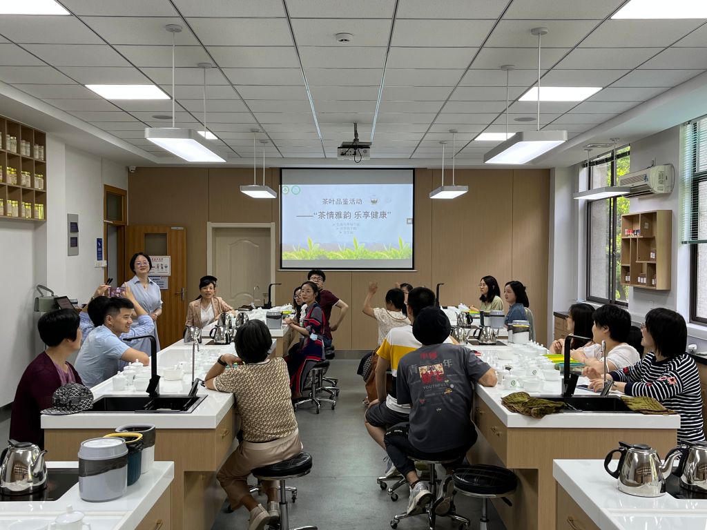 本网讯 为传承中华传统文化,领略茶文化魅力,加强兄弟学院之间青年教师的沟通交流,6月7日下午,资源与环境学院联合工学院、信息与计算机学院分工会于茶业楼304室组织开展“茶情雅韵·乐享健康”茶叶品鉴活动,特邀茶与食品科技学院戴前颖教授作《中国名茶赏析》专题讲座。来自三个学院的30余名教职工现场参加,活动由资源与环境学院党委书记王琼主持。
