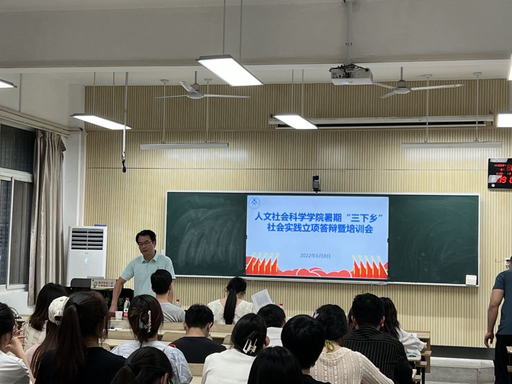 本网讯 为深入学习宣传贯彻习近平新时代中国特色社会主义思想,根据学校2022年暑期“三下乡”社会实践工作安排,6月8日晚,人文社会科学学院在人文楼101教室举办“三下乡”项目申报答辩暨培训工作。学院党委副书记吴永红参加本次活动。