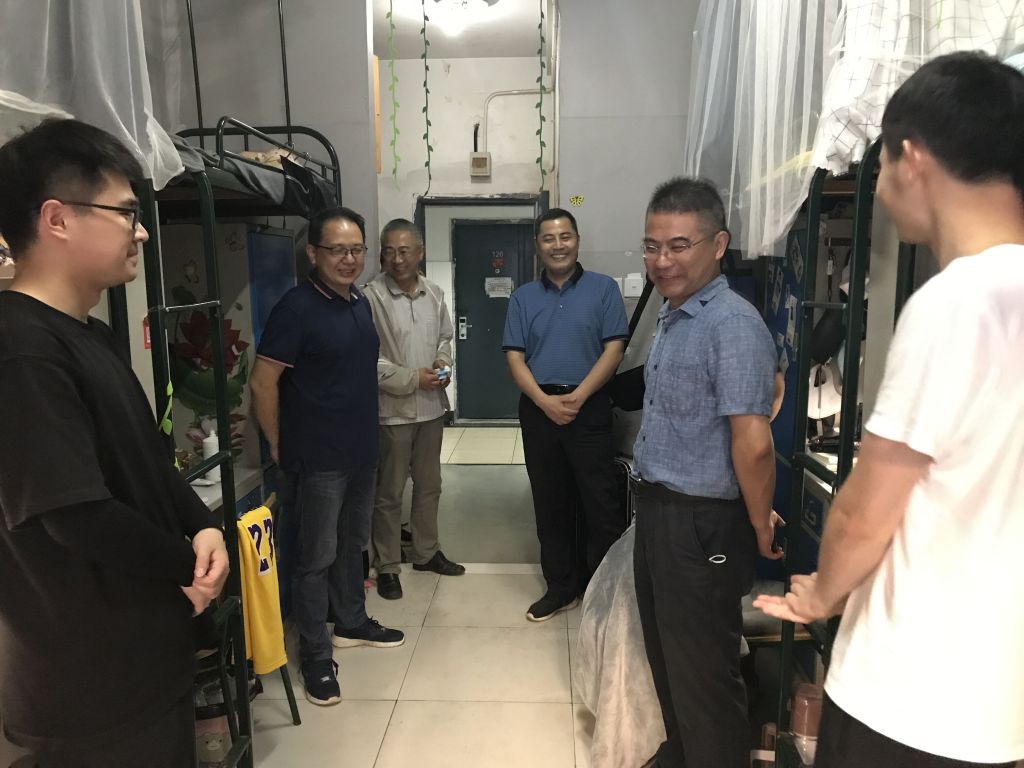 本网讯 6月14日晚,工学院党政领导任琪、陈黎卿、姚兴贵、张国学,全体毕业班辅导员深入大学生公寓走访,为即将离校的2022届毕业生送上关怀与祝福。