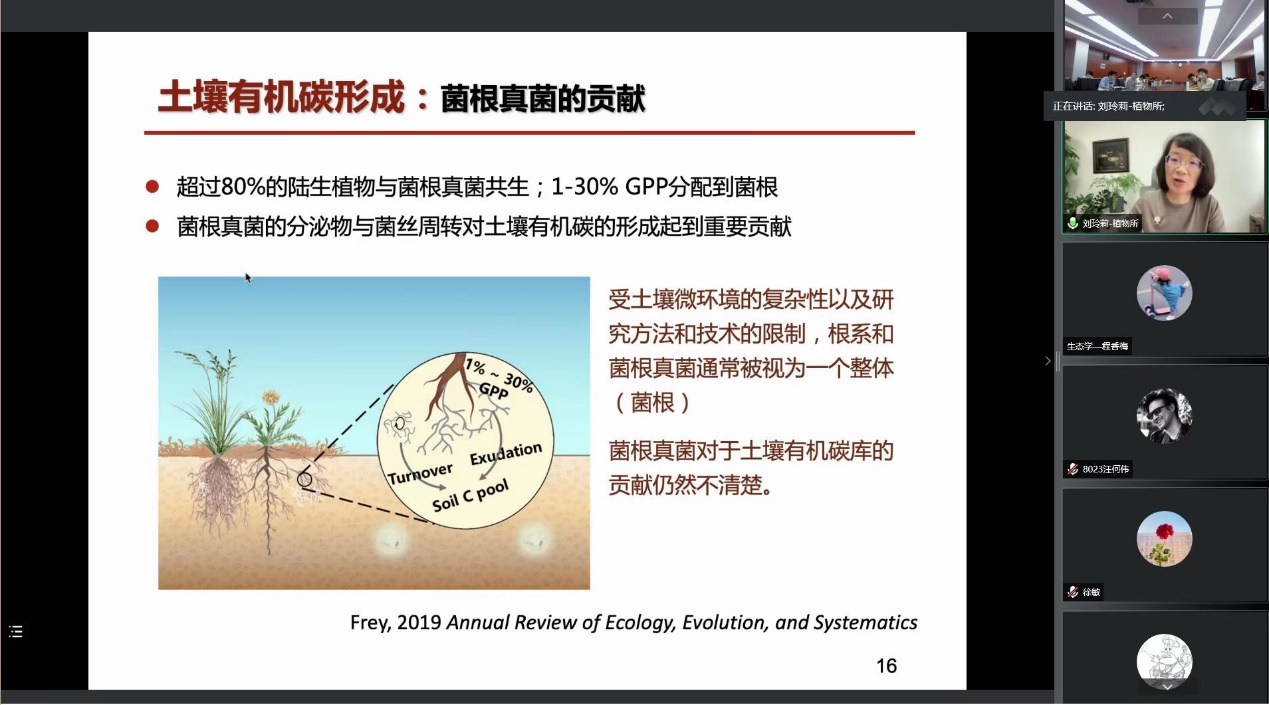会上,刘玲莉作题为“植物与微生物互作对草地土壤碳氮循环的影响”学术报告,分别围绕植物和微生物群落结构的变化如何调控土壤碳循环关键过程、不同输入途径的植物碳转化为土壤有机质的效率是否存在差异、植物和微生物相互作用如何调控生态系统氮循环的季节动态等三个科学问题进行了详细地分析与阐述。