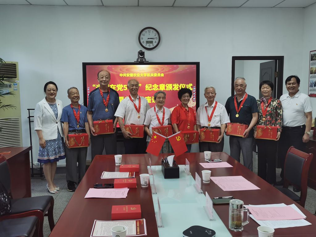 仪式结束后,机关党委组织与会同志进行了座谈交流。座谈中,老党员畅所欲言,纷纷表示,荣获“光荣在党50年”纪念章,心情很激动、很自豪,深切感受到党的关怀和组织的温暖,虽然人已退休,但心不离党、休不褪志,一定继续关心学校事业发展,积极参与社会活动,热心服务人民群众,为党的建设和学校事业发展尽心尽力、发光发热,用实际行动诠释对党忠诚的无悔初心。
