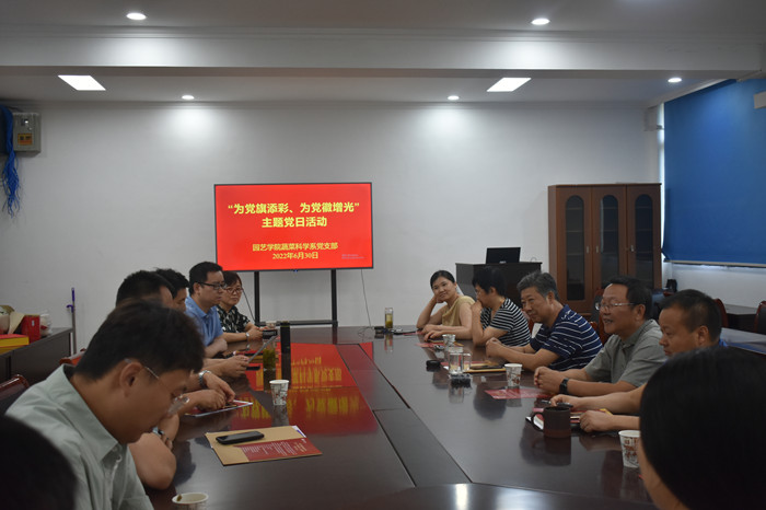 主题党日活动振人心。6月29日,果树科学系党支部结合“我为师生办实事”和“暖民心”活动要求,开展“为党旗添彩、为党徽增光”主题党日活动,号召全系教师为2名困难教职工募捐,以实际行动解决师生难事急事。6月30日,蔬菜科学系党支部以及学院办公室党员,召开“为党旗添彩、为党徽增光”主题党日活动,邀请了荣休老教师陶鸿为大家做分享报告。他深情地回顾了自己在农大工作的难忘岁月,为学院的快速发展感到骄傲和自豪,希望大家特别是青年教师“传承不缺位”,强化使命担当,扛起时代责任,做好新时代的“答卷人”。7月1日,本科生党支部和研究生党支部开展“为党旗添彩、为党徽增光”主题党日,开展专题党课,集中观看红色经典影片,重温入党誓词,引导学生党员铭记初心使命。