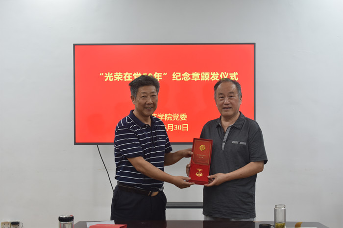 颁发纪念章凝信心。为增强老党员荣誉感、归属感,激发全体党员奋进新时代、筑梦新征程的使命感和责任感,6月30日下午,园艺学院党委举行“光荣在党50年”纪念章颁发仪式,学院党委书记朱绍友向在党50年老党员颁发纪念章。会议强调,全院师生党员要积极以老党员为标杆,向老党员看齐,努力接稳时代的接力棒,牢记初心使命,争做新时代的合格党员,以优异成绩迎接党的二十大胜利召开。