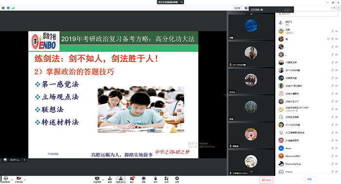 2019级国贸专业的王同学表示,“学院在暑假期间给我们考研的同学做线上辅导真的走心了。这场讲座干货满满,对我很有启发意义,后面我也会按着老师的指导努力备考,期待能与理想的学校‘一研为定’。”