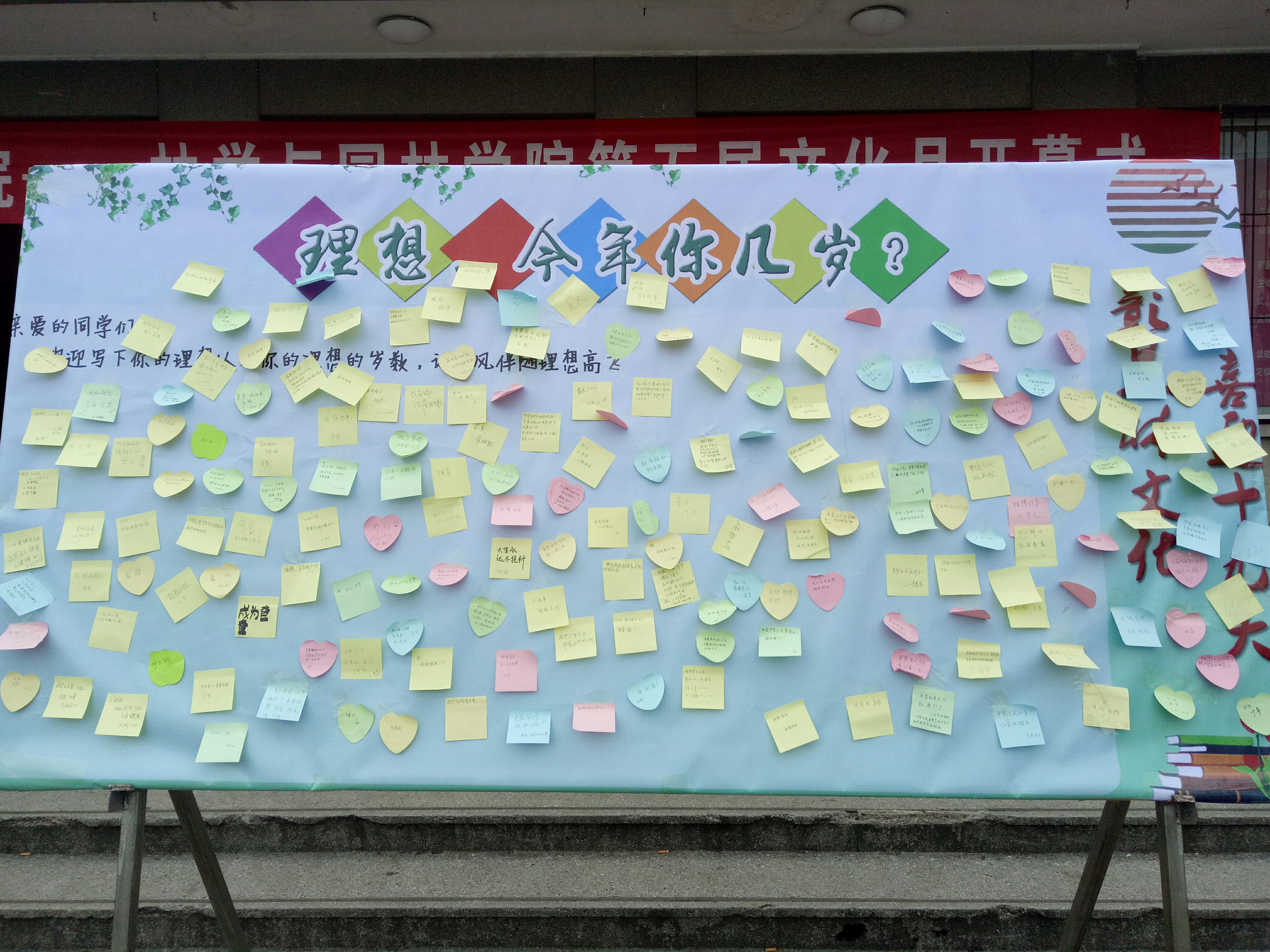 林院学子的才艺表演与“理想,今年你几岁?”的展板成为开幕式的亮点。我院学子充满青春热情的动感劲舞将开幕式推向高潮。“理想,今年你几岁?”的展板也吸引了学生的关注,同学们纷纷在上面写下自己的理想,展望未来,共筑青春梦!