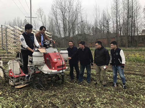 本网讯3月20日下午,工学院院长、省农机装备应用技术产业体系首席专家曹成茂教授带领工学院师生到庐江开展水稻机械化插秧智能监测系统田间试验验证工作。庐江县现代农业技术推广中心负责人到场观摩。