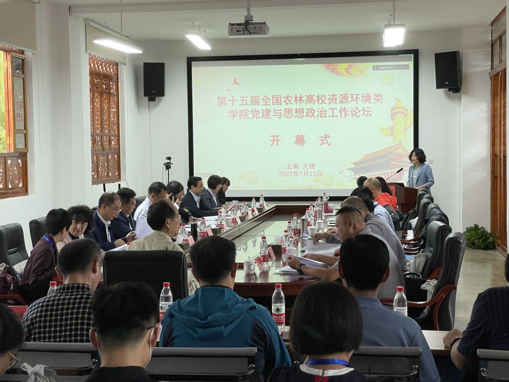 本网讯 7月21日,在中国学位与研究生教育会德育学会德育委员会指导下,由全国农林高校资源与环境类学院党建与思想政治工作研究会主办,云南农业大学与中国农业大学资源与环境学院、大理大学农学与生物科学学院、洱海流域农业绿色发展研究院共同承办,第十五届全国农林高校资源环境类学院党建与思想政治工作论坛在云南大理州湾桥镇古生村顺利召开,来自全国20所农林高校资源环境类学院50多位专家学者参会。我校资源与环境学院党委书记王琼、副书记姚洪章等3人参加会议,并作党建工作主题交流。