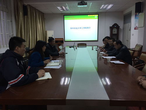 21日下午,华中农业大学工学院党委副书记瞿明丽、副院长宗望远、实验中心主任孟亮在工程楼热情接待了学院一行,双方进行了深入友好的交流。华中农业大学工学院十分重视对学生的创新创业能力的培养,学院以学科竞赛为抓手,组建了一支涵盖学院所有专业、实力雄厚的指导教师队伍,打造了一个由多个学科实验室、工程训练中心组成的创新实践平台,学院、指导教师从教学及项目经费中划拨专门经费支持学生创新创业实践,全院从领导到职工、从教师到学生形成了良好的竞赛氛围和完备的培养机制,多年来在各类省、国家级竞赛中取得了丰硕的成果,实现了教师锻炼和学生培养的双赢局面。姚兴贵表示要认真学习借鉴华农工学院的成功经验,希望两院加强联系,相互学习,资源共享,携手发展,会上双方还就学生日常管理、学生党建、招生就业等工作进行了座谈。座谈会开始前,学院一行还参观了华中农大工学院机电工程训练中心和大学生创新创业实践基地。