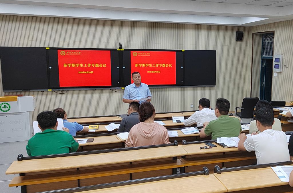 会议对我院暑期学生参加“互联网+”等各项学科竞赛等工作进行回顾和总结,并对开学工作进行布置。会议集中学习了2022年秋季学期开学返校工作方案,重点就学生返校条件、返校审核和返校后的学生日常教育管理等方面做了说明和要求,并对主题班会、走访宿舍、心理健康教育、防电信诈骗等各项工作做详细安排和布置。
