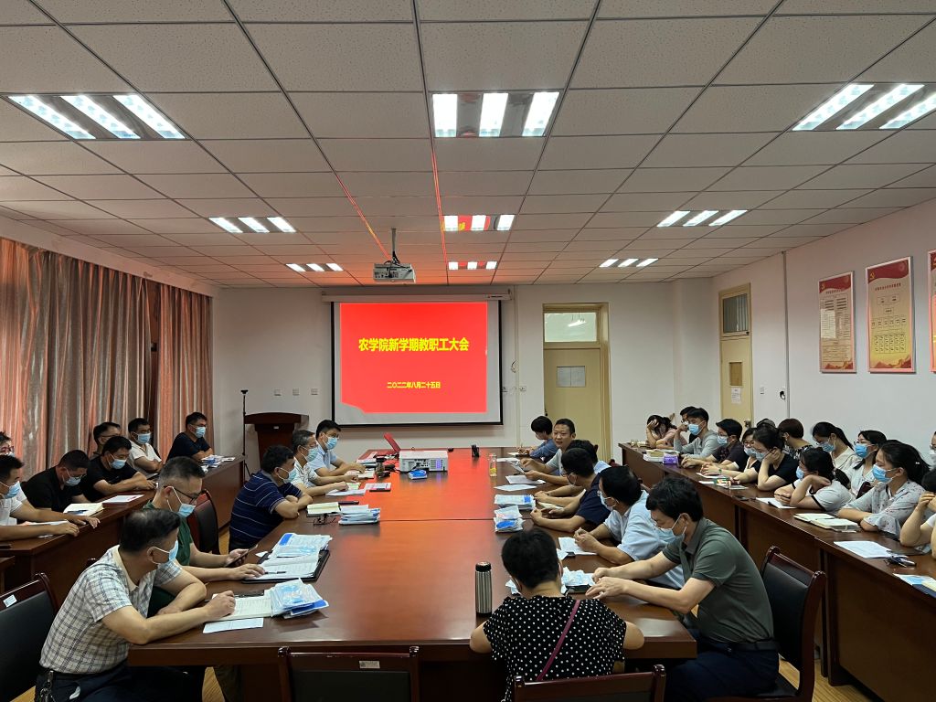 本网讯 8月25日下午,农学院在十教518会议室召开新学期全体教职工大会。会议由院长李金才主持。