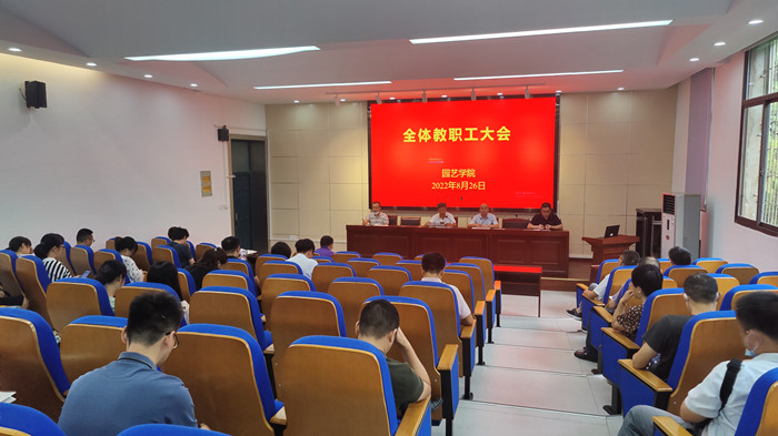 本网讯 8月26日下午,园艺学院在二教245报告厅召开新学期全院教职工大会,通报学院2022年上半年重点工作情况,研究部署下半年工作以及开学工作。学院党政领导、全体教职工参加了会议。会议由学院党委书记朱绍友主持。