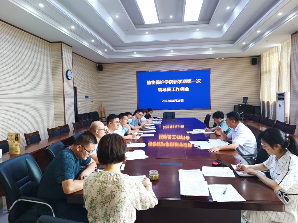 本网讯 8月26日,植物保护学院在中西部综合楼1211会议室召开辅导员工作例会,部署推进新学期“开学第一课”系列教育教学工作。学院党委副书记汪小强主持会议。副院长唐庆峰,全体专兼职辅导员参加会议。