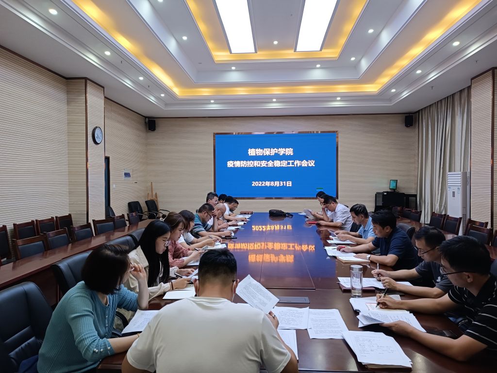 本网讯 8月31日,植物保护学院在中西部综合楼1213会议室召开疫情防控和安全稳定工作会议。学院党政班子成员,党委委员,教工和学生党支部书记,全体本科生、研究生专兼职辅导员、班主任参加会议。会议由学院党委书记张平主持。