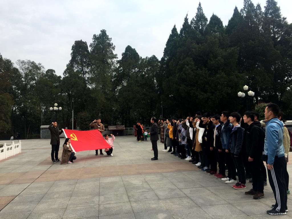 在金寨县革命纪念碑前,党员们怀着沉重的心情默哀3分钟,以表达对革命先烈的哀思与敬意。在学院副院长、党委副书记江正君的带领下,党员们还面对党旗重温了入党誓词,表达了对党的信仰与忠诚。随后,党员们在解说员的介绍下,参观了金寨县革命博物馆,一张张泛黄的照片,一件件实物,一个个感人的英雄事迹,仿佛把大家带回了那个血雨腥风的年代,革命英雄们抛头颅、洒热血,为战争胜利作出了重大贡献,也让每位党员感慨今天美好生活的来之不易。