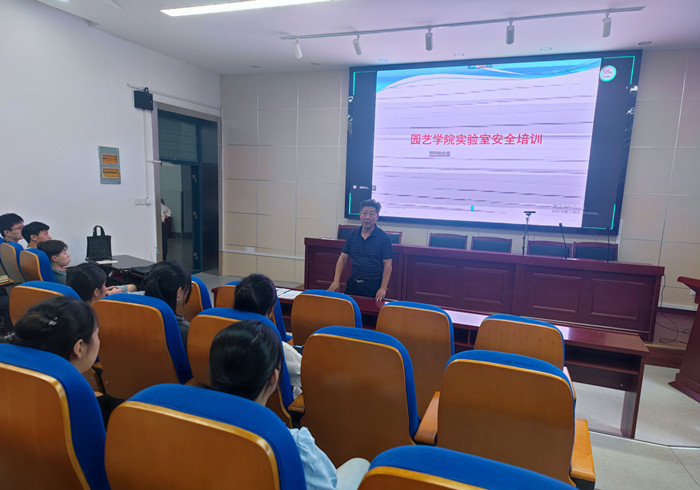 本网讯 9月16日下午,园艺学院在二楼报告厅举行实验室安全教育培训会。校生物技术中心副主任叶辉应邀作专题报告。学院党委书记朱绍友出席会议。实验中心老师及2022级硕博生参加了此次培训会。会议由副院长朱晓彪主持。