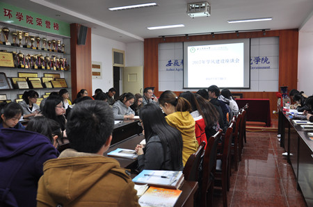本网讯 为夯实班风建设基础,推进学院学风建设进程,3月30日中午,资源与环境学院于十教418会议室召开学风建设座谈会。资环学院党委副书记张晓伟、2014-2016级各班级班长、团支书、学习委员参加了会议,会议由院团委老师主持。