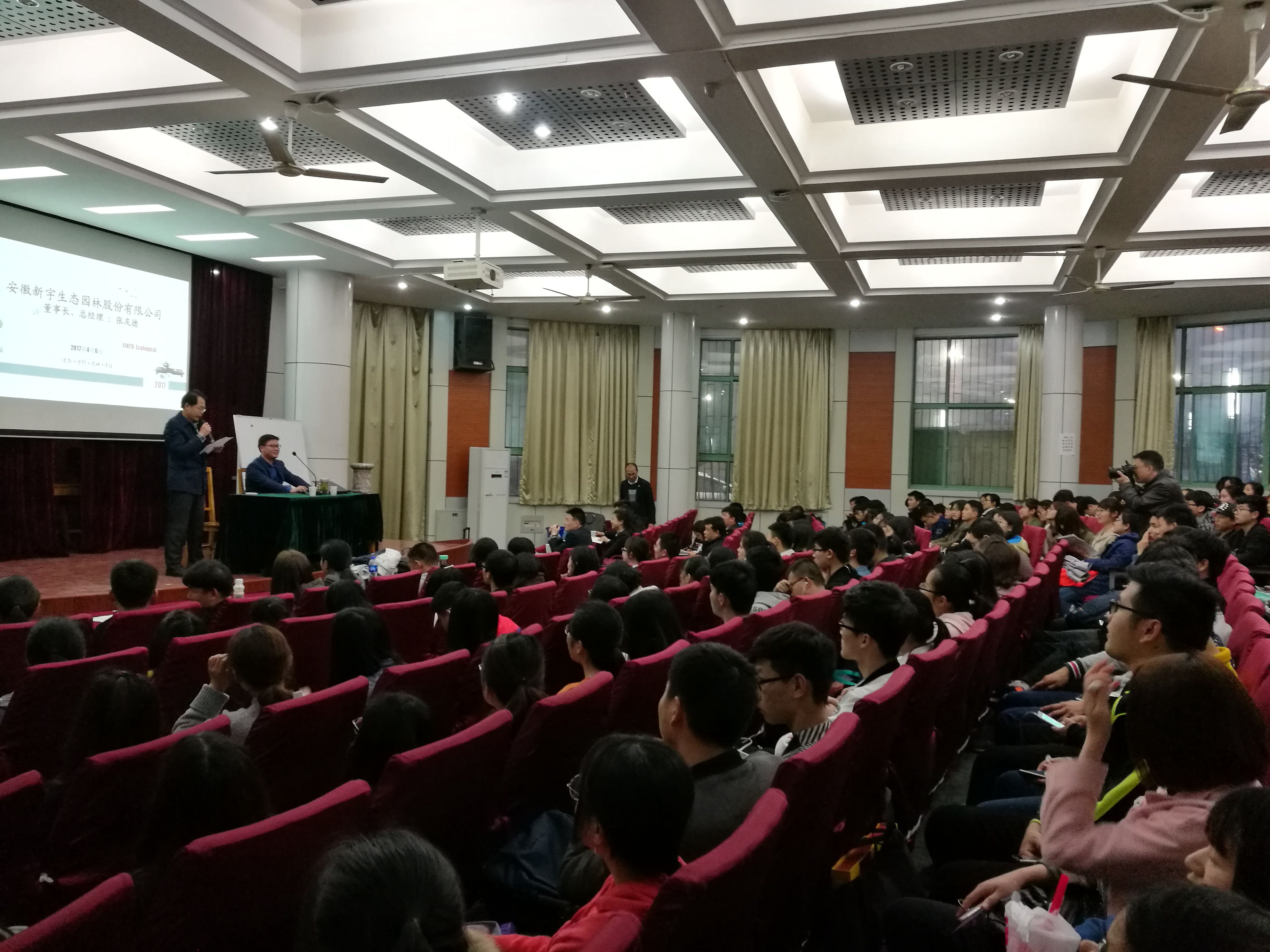 本网讯 4月6日晚,林学与园林学院首期“郁林讲坛”在林学楼报告厅开讲。学院邀请安徽新宇园林股份有限公司董事长兼总经理张友德“以创业激情放飞职业梦想”为主题与学生共话创业就业。在新宇公司就业任职的我院历届园林专业校友出席讲坛,学院园林专业学生、各学生党支部党员、有创业意向的同学参加了讲坛。本期“郁林讲坛”由学院党委副书记、副院长江正君主持。