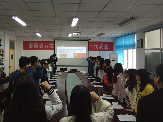 会上,学院团委老师传达了校团委《关于在全校团员中开展“学习总书记讲话 做合格共青团员”教育实践实施方案》文件精神,并对学院“一学一做”教育实践的具体实施方案作了详细解读。同时,团委老师带领与会同学认真学习了习近平总书记关于青少年和共青团工作的重要论述,鼓励广大团员牢固树立四个意识,发挥和彰显团员的先进性,要求各班级团支部要扎实开展“一学一做”教育实践,认真学习落实“三会两制一课”实施细则,加强团组织建设。最后,会议在重温入团誓词中圆满结束。