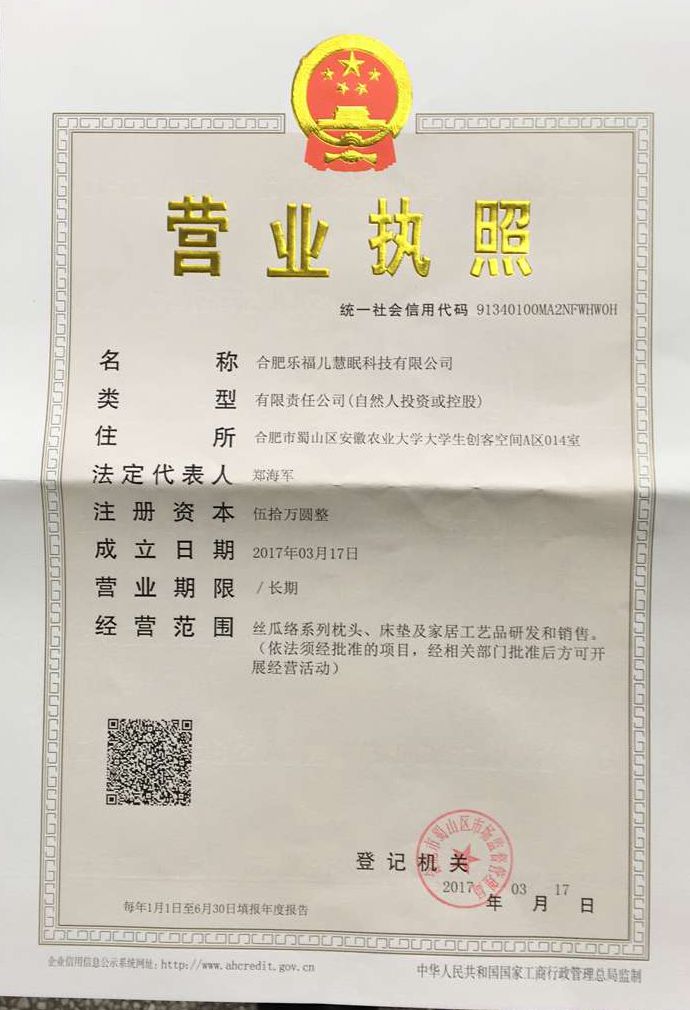 合肥乐福儿慧眠科技有限公司于2017年3月17日注册成立,注册资本50万,公司的前身是学院2015年3月组建技术研发小组,目前为止,公司拥有一批专业而经验丰富的家具设计及材料研发队伍,聘有国内家具领域的专家做顾问,不断吸纳具有家具研发专业知识的高科技人才,为企业的发展积蓄后劲。公司以“人性化设计,定制化生产”为宗旨,为客户创造健康舒适的睡眠环境。秉承天然、环保、健康的设计理念,以科技为先导,先后在健康睡眠的潜心研究方面获得30余项国家专利,主要开发丝瓜络枕头、丝瓜络床垫、丝瓜络母婴产品、丝瓜络鞋垫、丝瓜络浴球、丝瓜络工艺品等,现已投入市场销售。与此同时我们还致力于丝瓜络新型产品研发,为发展好天然生物质材料做出不懈努力。公司计划在3-5年内将在全国建立销售网络,保持并且进一步巩固公司在该行业的领先地位,拓宽收益。拓展公司产品领域,实现产品多元化,挖掘社会资源为公司发展注入动力。