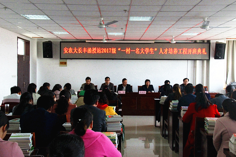 本网讯 4月13日上午,生命科学学院长丰县2017级“一村一名大学生”人才培养工程开班典礼在长丰县县委党校举行。生命科学学院常务副院长蔡永萍,继续教育学院副处级调研员史怀乐,生命科学学院党委副书记、副院长吴国卿,生命科学学院副院长江海洋,长丰县委组织部副部长陶宝,长丰县委党校副校长顾正锐等领导出席了开班典礼。班主任陈现民、甄玲等负责人以及该县2017级农业技术与管理专业全体学员参加了开班典礼。