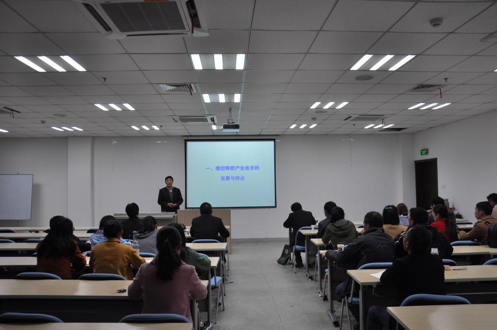 张民教授作了题为“缓控释肥产业技术的创新发展与应用”的学术报告,他从缓控释肥的定义、种类以及缓控释肥产业技术的发展与特点、缓控释肥产业链及产业技术体系、缓控释肥产业技术创新与产业化、缓控释肥新技术新工艺研究进展、控释肥与作物同步营养机理研究等方面进行了详细的讲解,报告深入浅出,具有较强实践指导意义,使与会师生对缓控释肥料的研究及产业发展趋势有了全面的认识和了解。