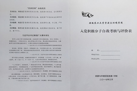 资环学院制定的入党积极分子自我考核与评价体系,是学院构建的大学生党员发展和教育管理“4435”体系建设中关于入党积极分子培养、教育和考察又一重要实践,旨在通过明确的考察、教育和培养内容和要求,采取定量+定性,自我考核+支部评价的形式,全面推进入党积极分子考察标准化建设,为提升党员发展质量奠定坚实基础。(刘怡青 通讯员:程玉峰)