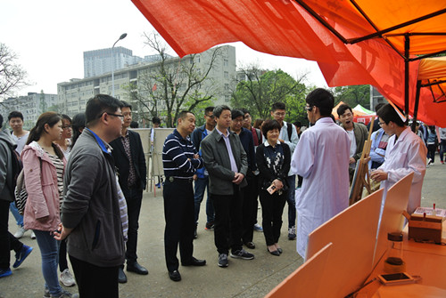 本网讯 为展现理学院科技文化风采,以优异成绩喜迎中国共产党第十九次全国代表大会胜利召开,4月20日上午,安徽农业大学理学院第四届科技文化月在校大礼堂广场开幕,校教务处、学工部(处)、招生就业处、团委、理学院等单位负责同志出席了开幕式。