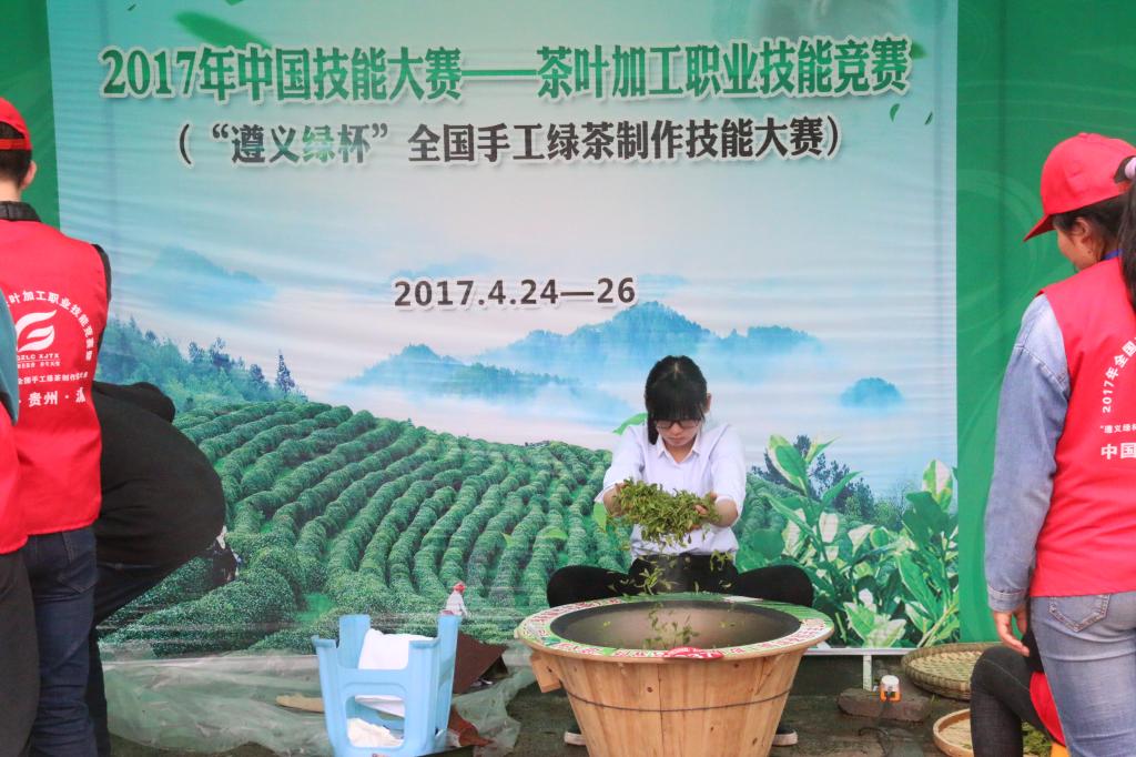 本网讯 4月24日-26日,由中国茶叶流通协会、中国就业培训技术指导中心、中华全国供销合作总社、遵义市人民政府等共同举办的2017全国手工绿茶制作大赛在贵州湄潭举行。由宁井铭、胡绍德、孙长应三位教师担任技术指导,2014级茶学专业3名同学代表我校参加了比赛并全部获奖,其中,三等奖1项,优秀奖2项,我校荣获优秀团体奖。