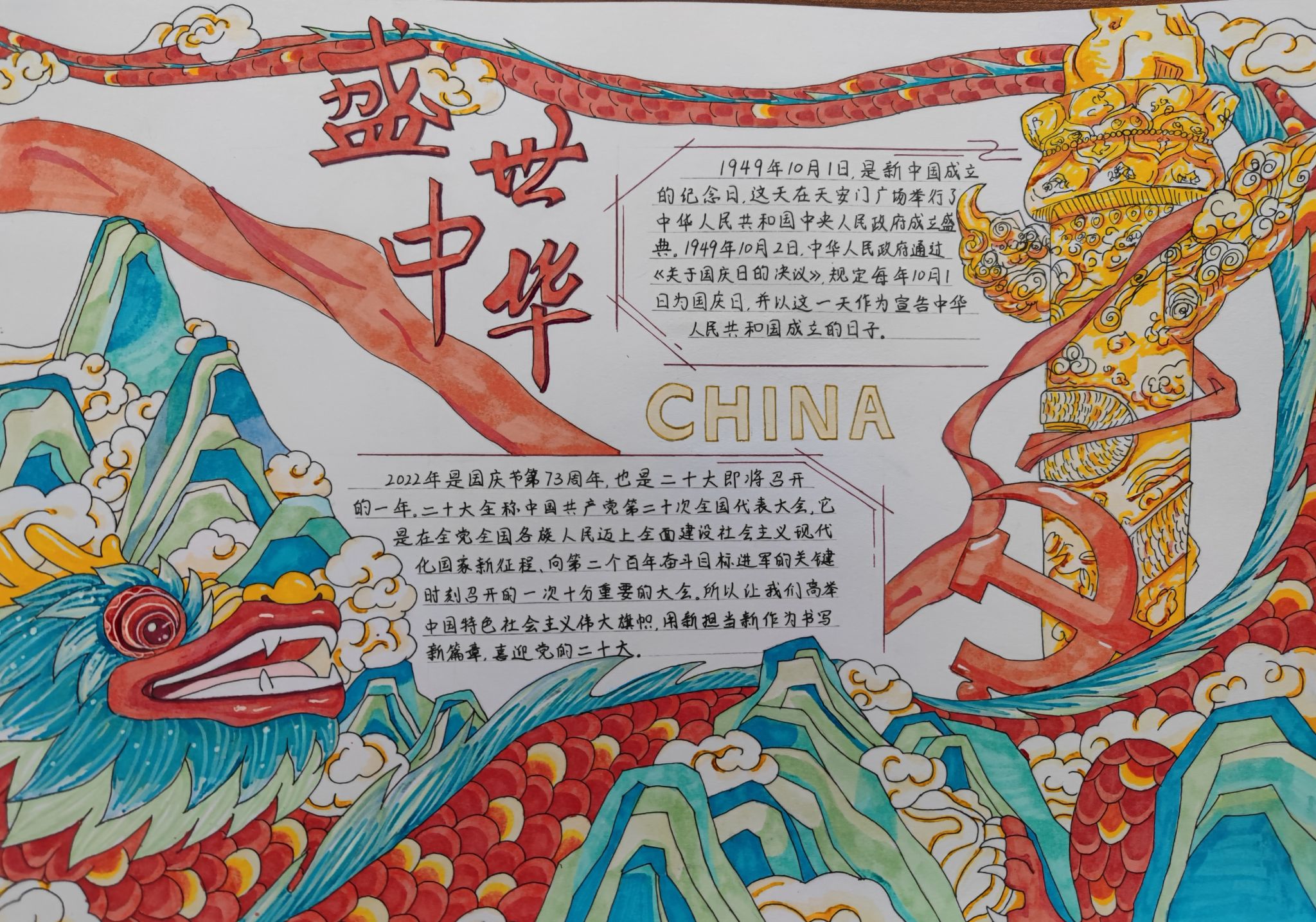 “我为祖国颂赞歌”主题手抄报制作活动得到了同学们的积极响应和踊跃报名,活动历时一周,同学们用手中的画笔,体现着对爱国精神的理解,更表达了对祖国母亲的深切祝福。