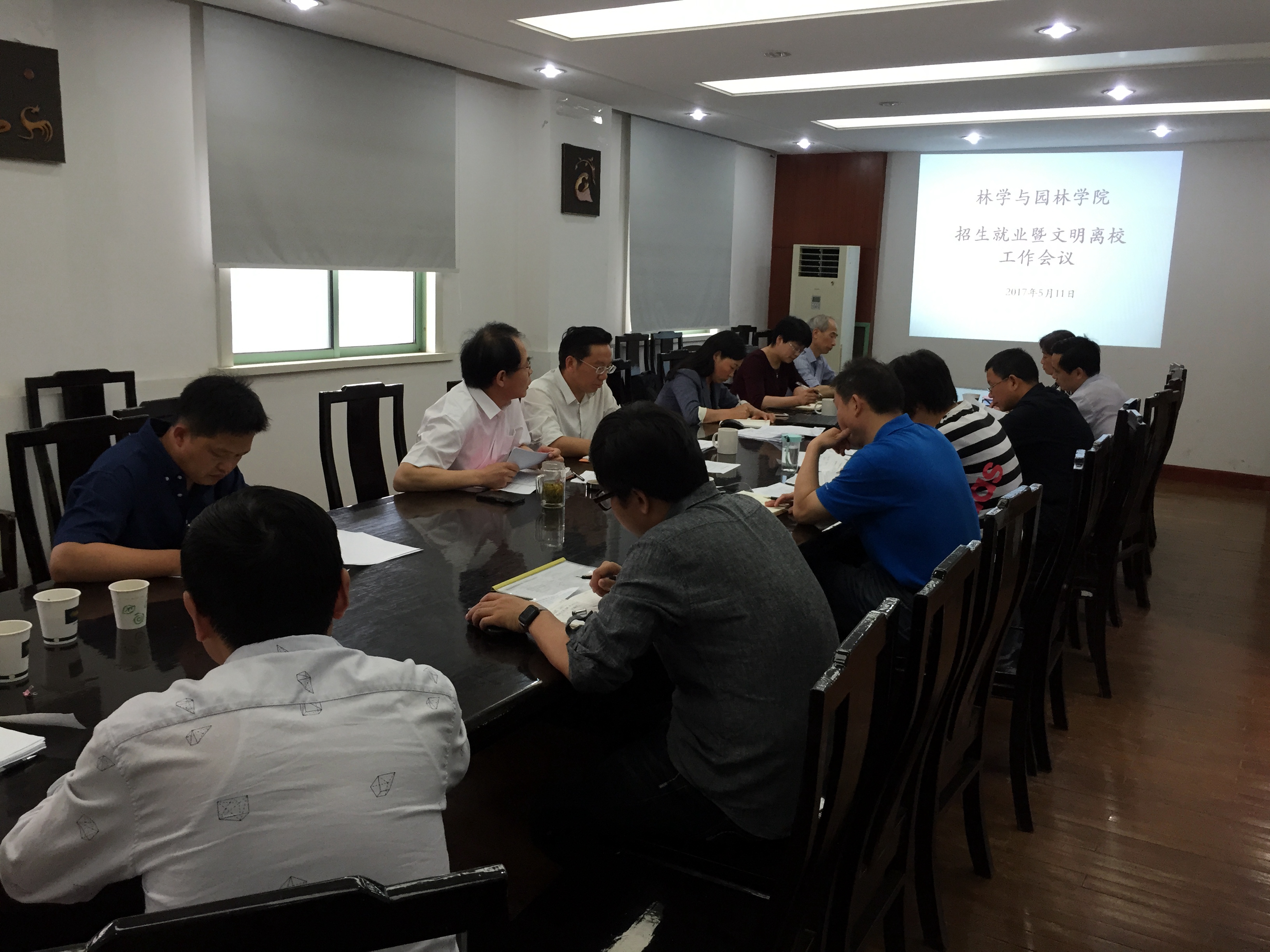 本网讯 为做好2017年招生就业工作,指导毕业生安全顺利毕业, 林学与园林学院于5月11日召开招生就业暨文明离校工作会议。学院招生就业领导小组成员和毕业班班主任参加了会议。会议由学院党委副书记、副院长江正君主持。