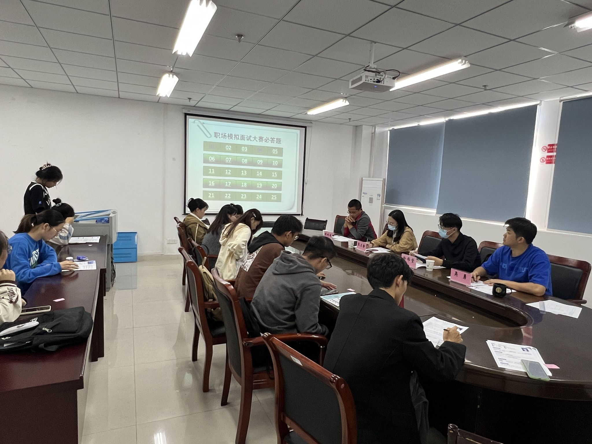本网讯 10月13日,理学院第六届“校友杯”职场模拟面试大赛在中西部综合楼641会议室举行。京东方人力资源部徐伟堂经理和兄弟学院就业工作联络员担任评委。