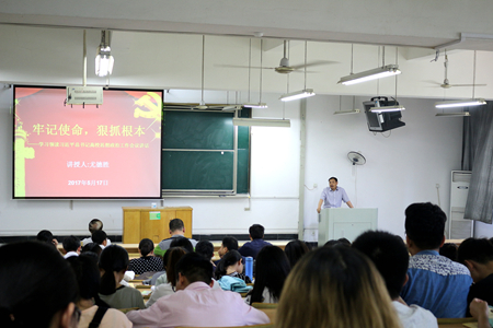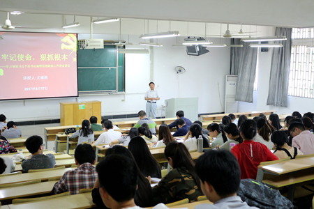 本网讯 5月17日下午,信息与计算机学院党委原书记尤德胜同志应邀为党员培训班学员作题为《牢记使命,狠抓根本》的辅导报告。学院党委书记曹俊同志主持报告会,学院全体师生党员参加此次学习。