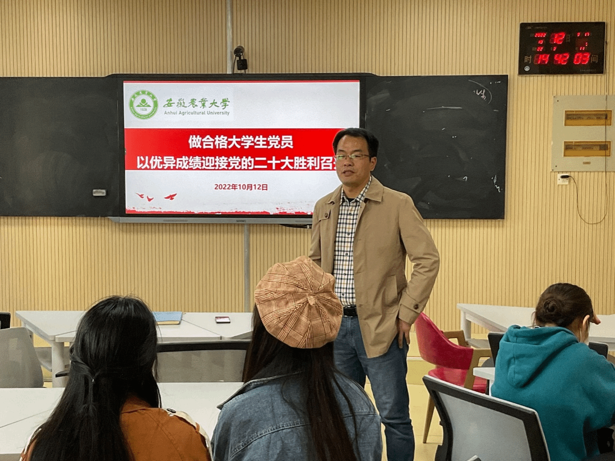 本网讯 10月12日,人文社会科学学院党委副书记、副院长吴永红以“做合格大学生党员,以优异成绩迎接党的二十大胜利召开”为主题,给学院学生党员开展专题党课教育。