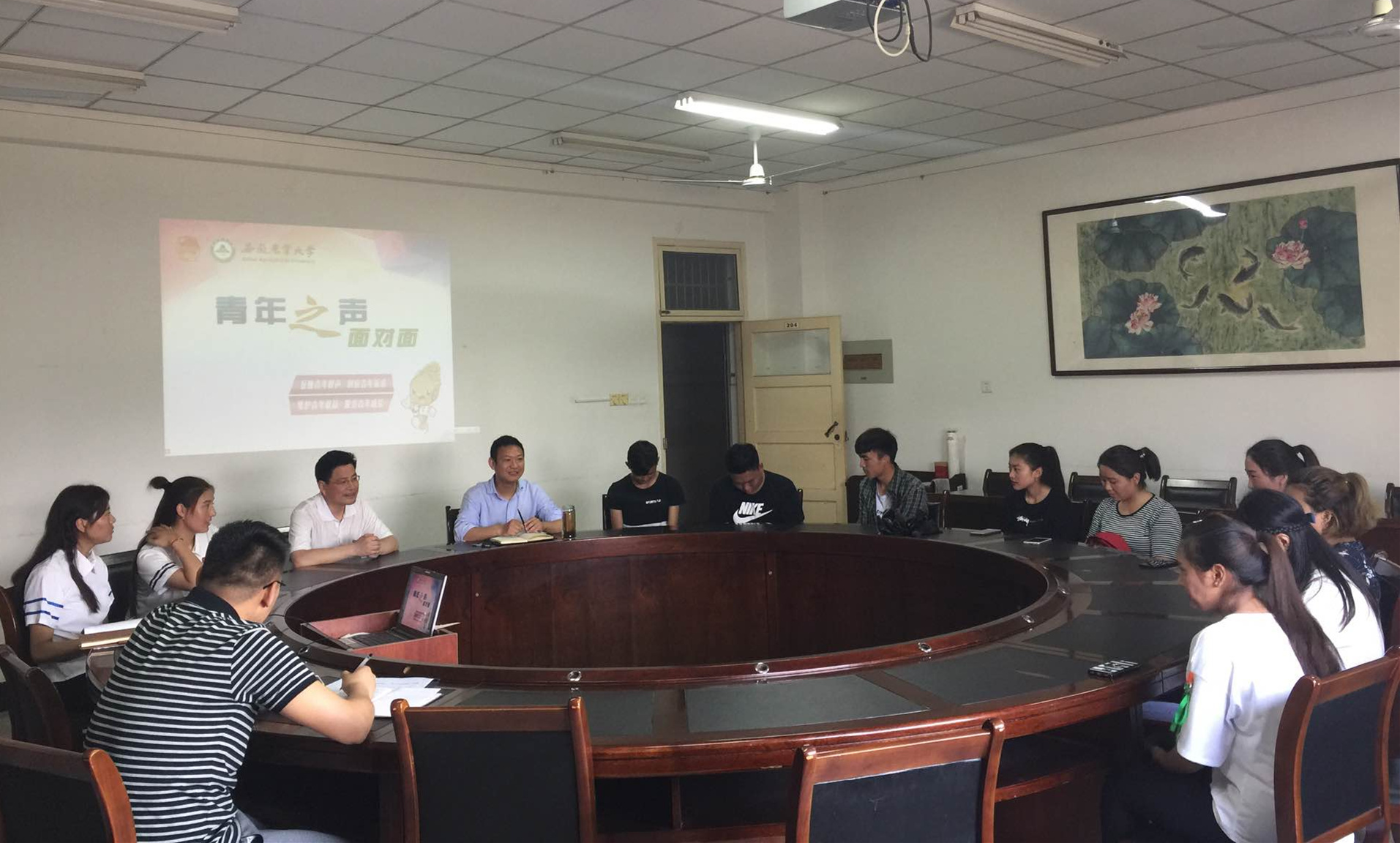本网讯 5月19日下午,人文社会科学学院11名藏族学生受邀至人文楼204会议室,学院党委书记孙超、副书记吕大鹏接待了他们,与他们亲切交流,把“学工直通车”开到了藏族学生身边。