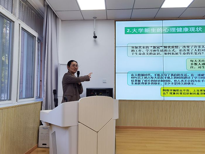 本网讯 10月12日下午,经济管理学院2022级新生适应性心理讲座在经管楼103智慧教室开讲。校学生处副处长刘柳应邀主讲。