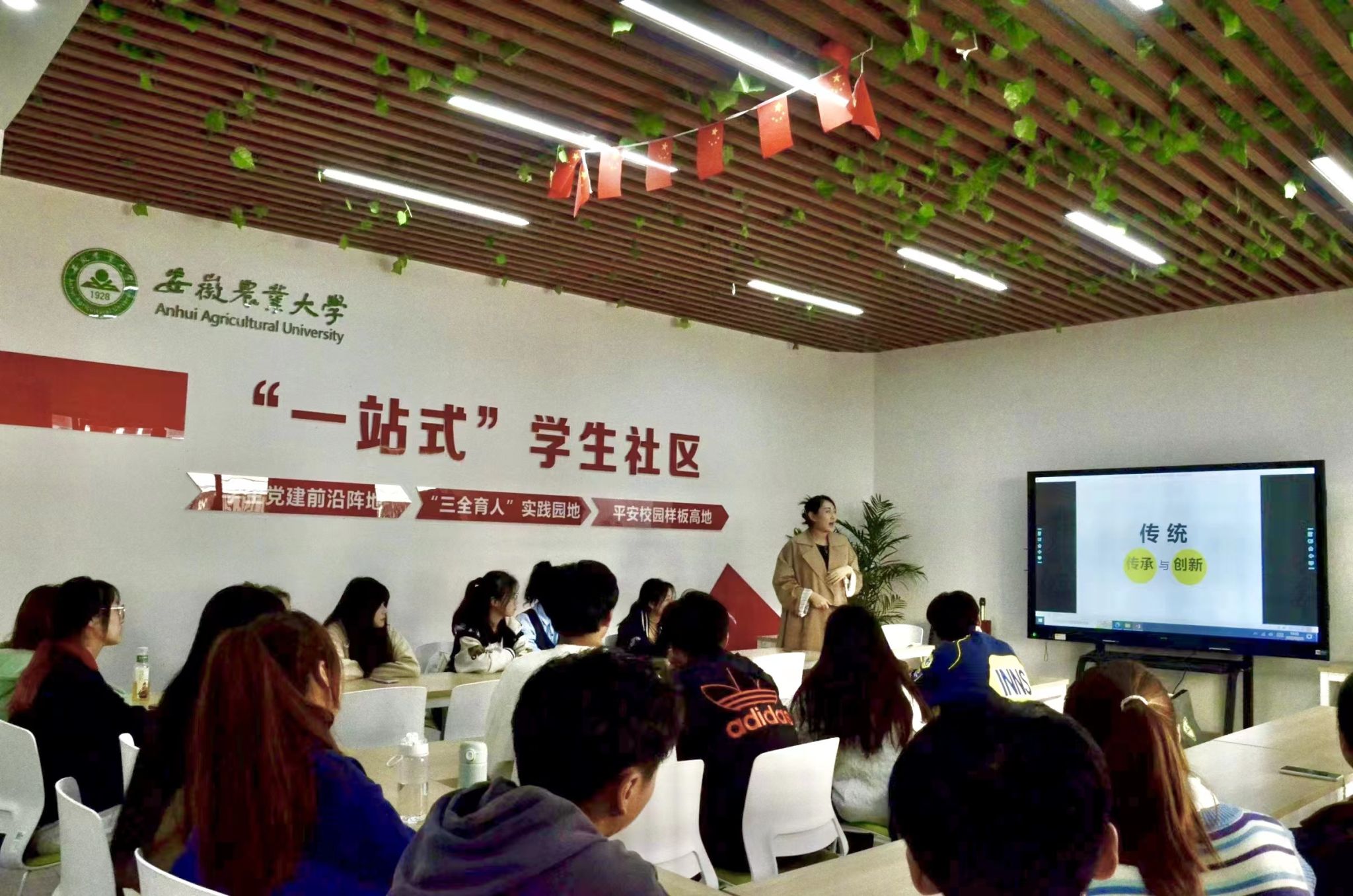 本网讯 10月14日下午,校艺术教育中心第二期美育讲堂在大学生公寓学生“一站式”社区服务中心开展,本次讲堂以“传统与创新——来一场思维碰撞吧”为主题,轻纺工程与艺术学院教师井媛主讲,相关学院的近40名学生参加了活动。