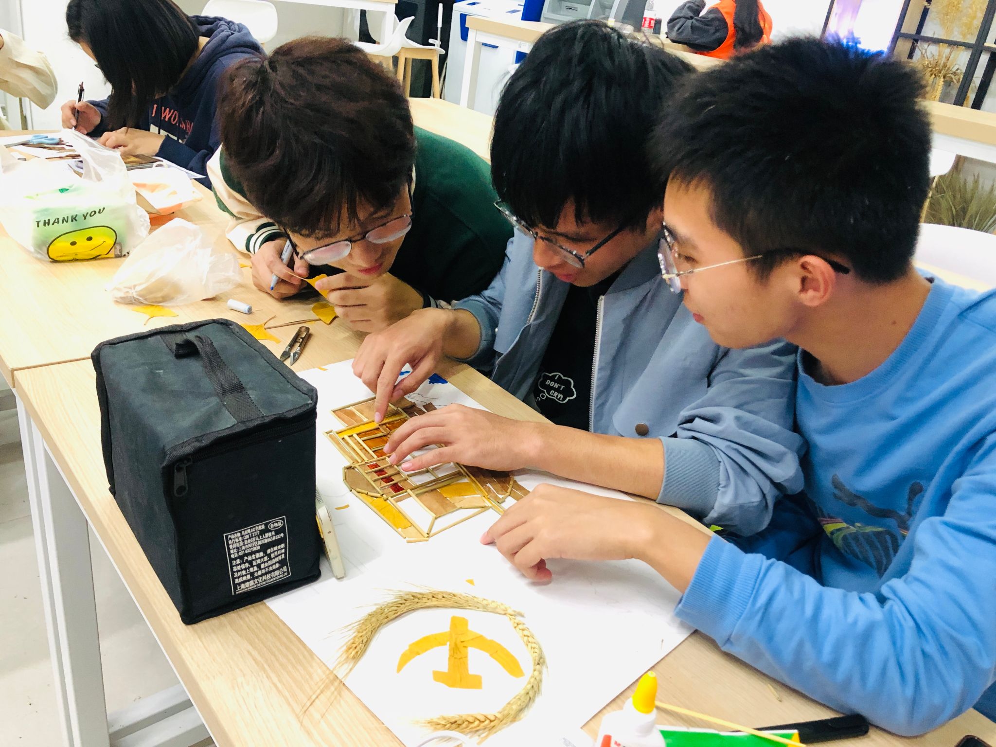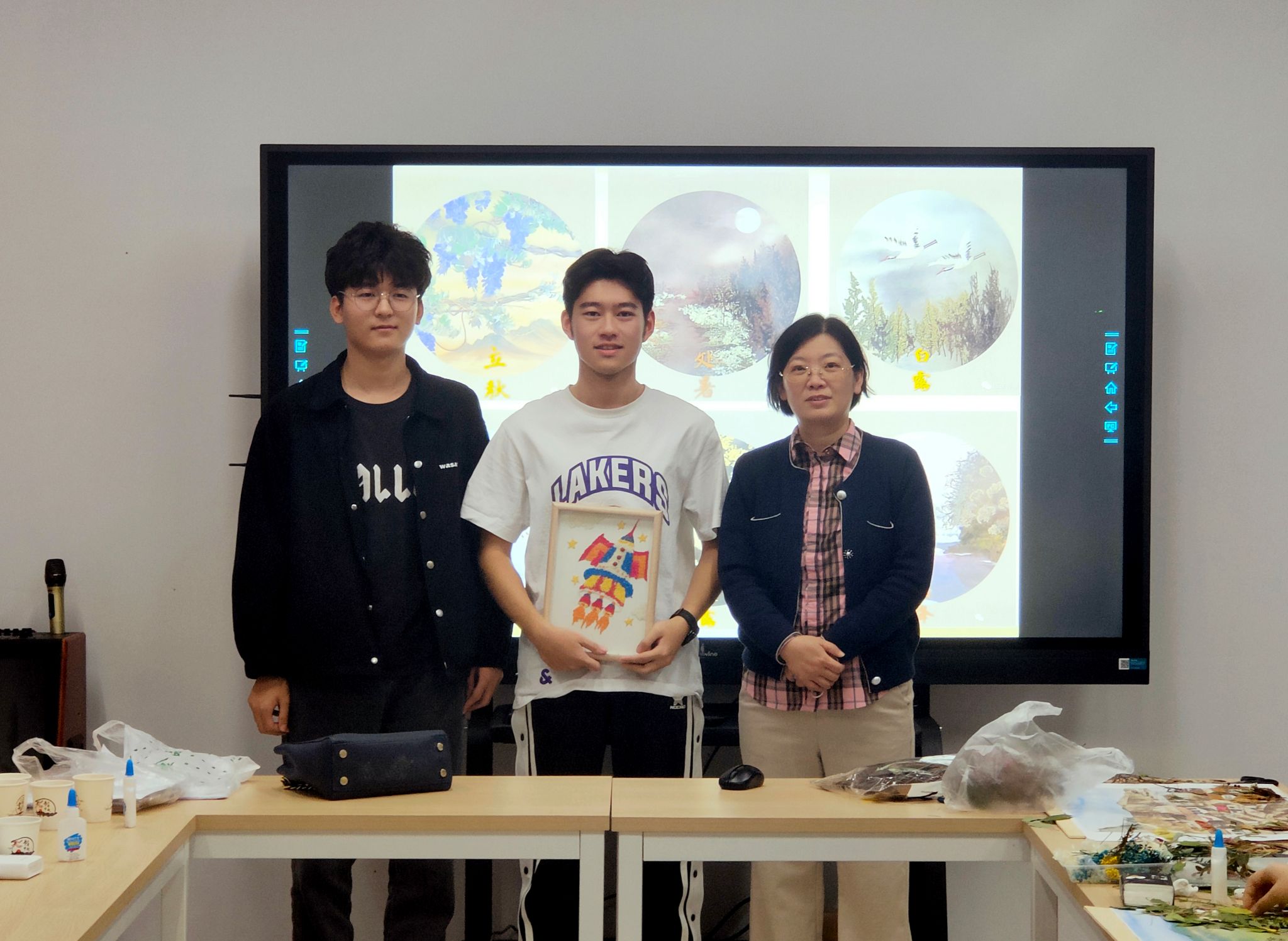 在“献礼二十大”植物标本制作活动中,同学们用一片片树叶、一支支植物根脉,拼出了党徽和五星红旗,拼出壮美山河,更拼出了今天的幸福生活。