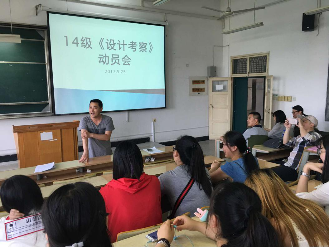 会上,吕剑秋重点强调了人身、财物安全和实习纪律要求,明确了设计考察目的与意义。陆小彪指出设计考察是要求学生走出课堂,实地考察我国当下设计的现状与发展。了解我国传统的设计与成果,积累设计素材并从中吸取宝贵经验,提升设计水平;同时汲取设计创意方法,提升设计审美,激发设计热情,运用先进设计理念促进设计能力的提高。实习指导老师也详细解答了同学们的提问并布置了具体的实习任务。