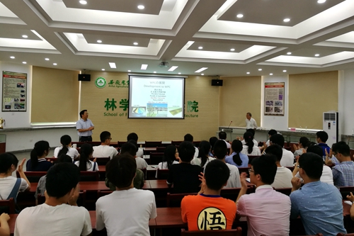 本网讯6月2日至3日,日本近畿大学高谷正弘教授来林学与园林学院进行学术指导和交流。报告会由院长刘盛全教授主持。林产工业系、材料科学与工程系相关老师、研究生及部分本科生参加了报告会并进行了学术交流。