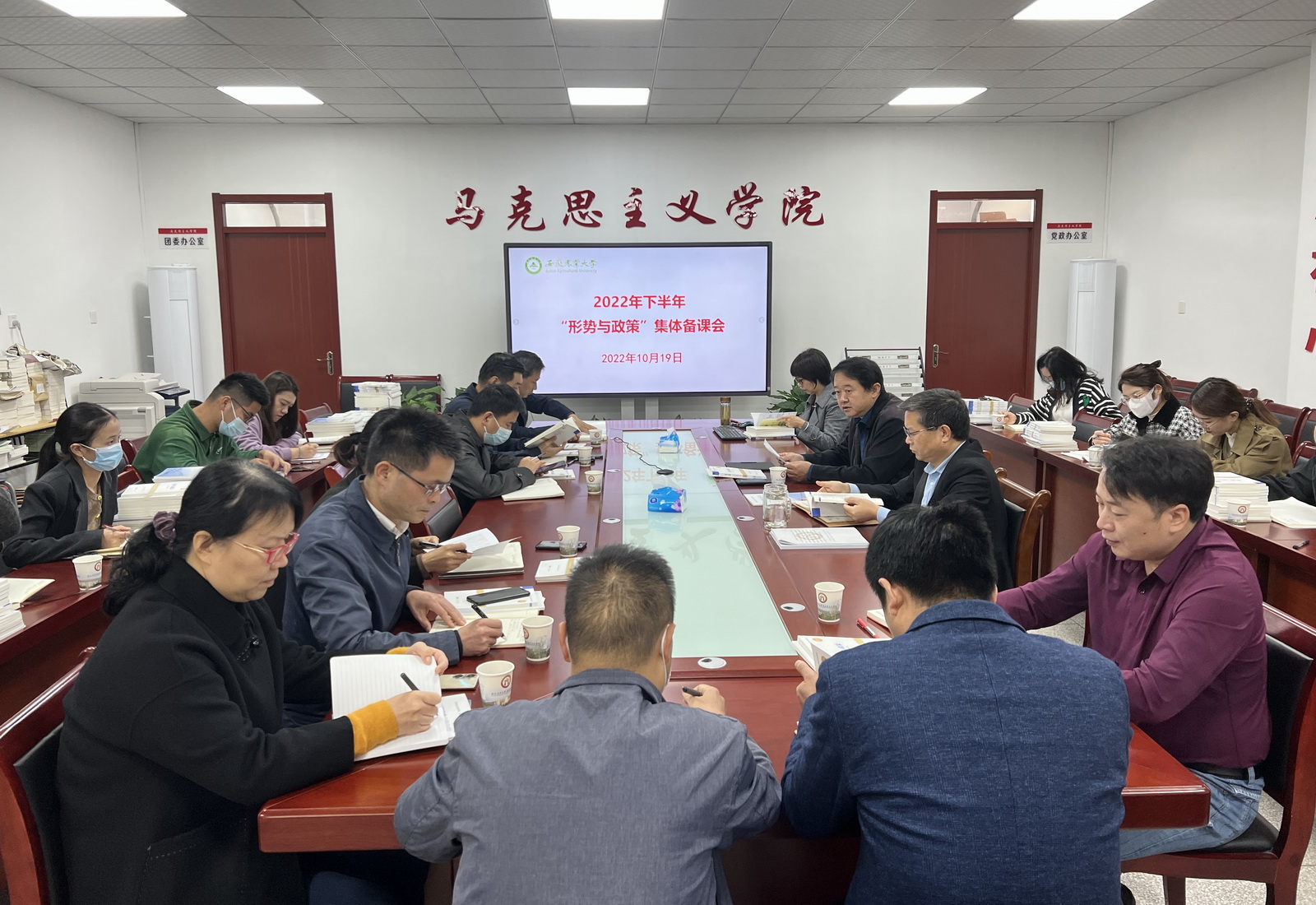 本网讯 10月19日上午,我校在马克思主义学院召开2022年下半年“形势与政策”集体备课会。教务处、学工部(处)、马克思主义学院相关负责人及各学院学生工作负责人、承担本学期“形势与政策”课教学的部分教师参加集体备课会。备课会由马克思主义学院党委书记、院长黄洪雷主持。