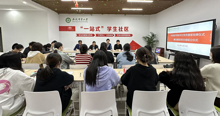 本网讯 10月19日下午,外国语学院在“一站式”学生社区举行学生党员寝室挂牌暨功能型党支部成立仪式。外国语学院党委书记方章东、组织部副部长黄庆华、学生处副处长周涛及功能型党支部全体党员参加会议。会议由院党委副书记姬惠惠主持。
