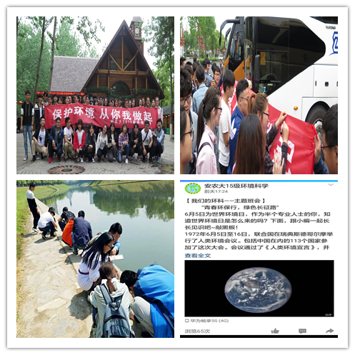 本网讯为深入开展“喜迎十九大 激扬青春梦”主题教育活动,增强青年大学生的社会责任感,以青春实际行动迎接党的十九大胜利召开,在“6.5”世界环境日到来之际,资源与环境学院积极谋划、创新形式,以“青春环保行·绿色长征路”为主题开展了丰富多彩的教育活动。